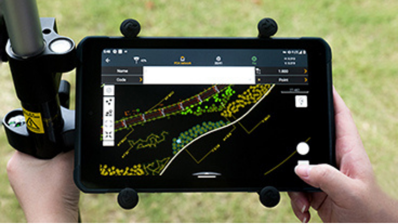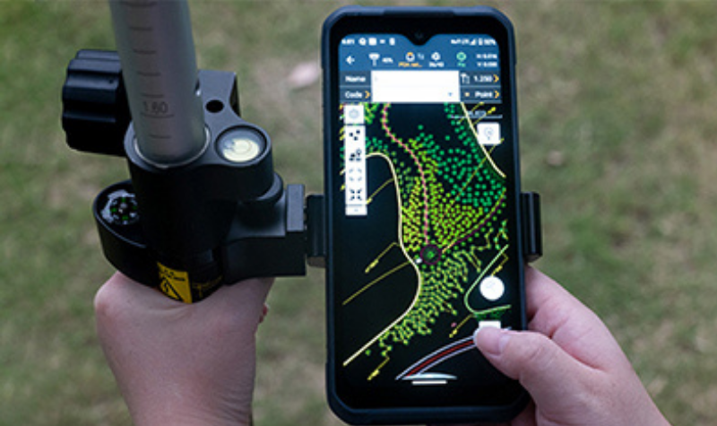 - Flujos de trabajo optimizados: replanteo rápido de puntos, líneas y superficies, compatible con catastral, GIS y construcción de carreteras